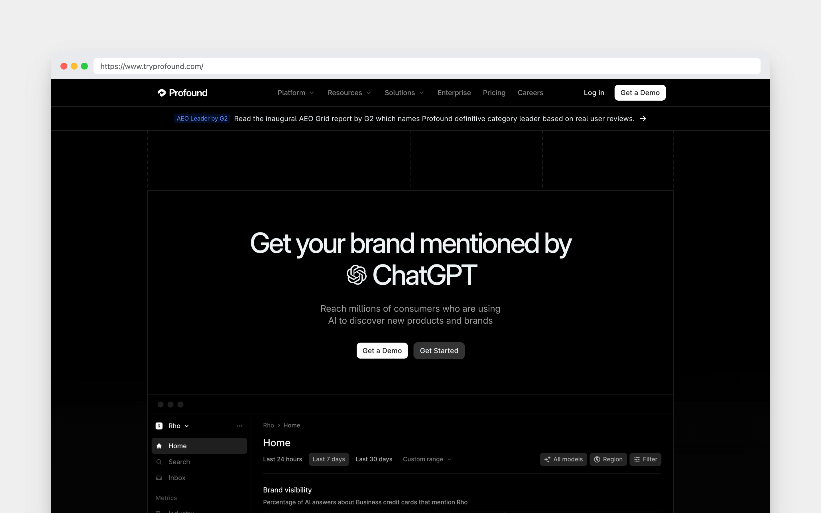 Profound is an AI visibility platform designed to track brand presence across generative engines and surface where competitors are being referenced instead.