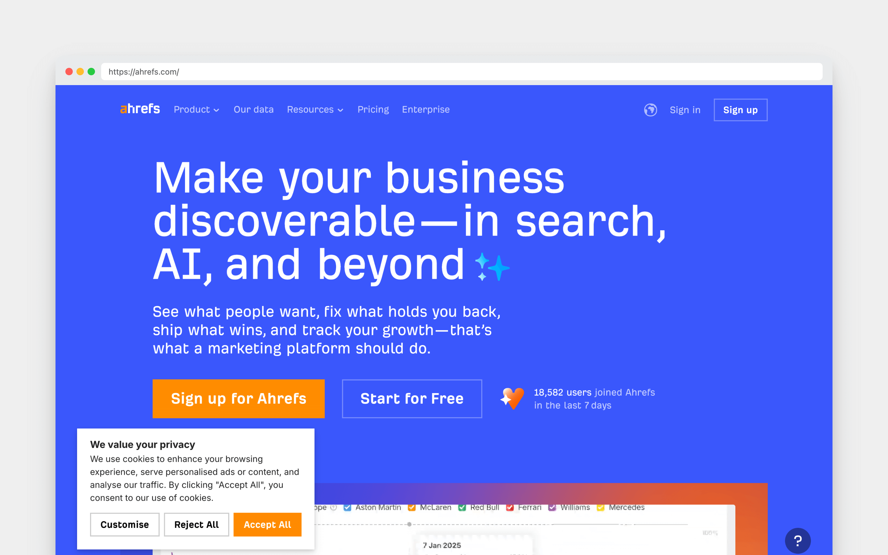 Ahrefs remains one of the strongest tools for topic discovery and authority gap analysis. While not AEO-native, it’s essential for building the topical depth AI systems tend to prefer.