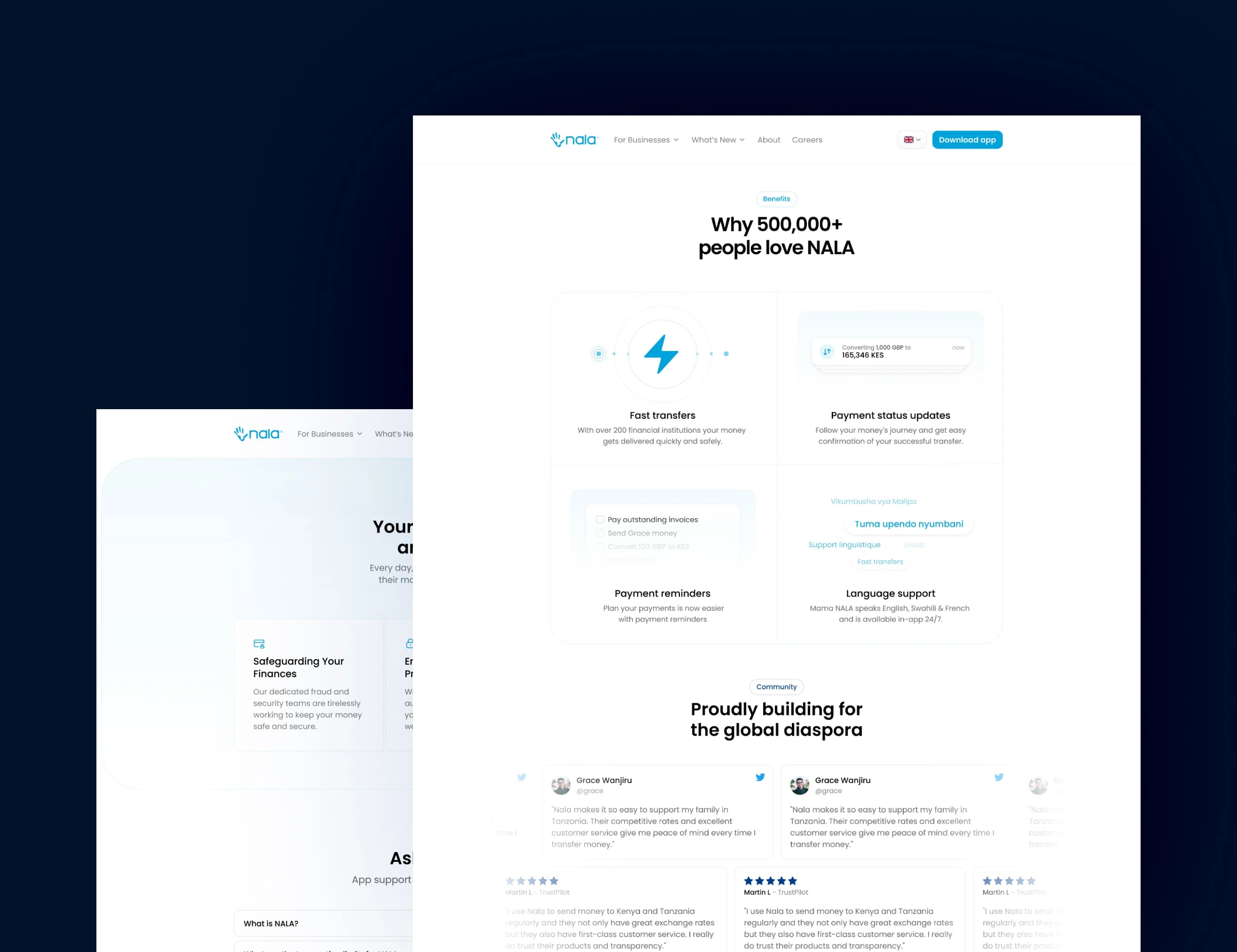 Nala empowers users to send money to Africa instantly and affordably. We partnered with them to redesign and rebuild their digital presence to better reflect their scale and purpose.
